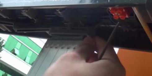 2.打開機箱門,擰下燈板螺絲;