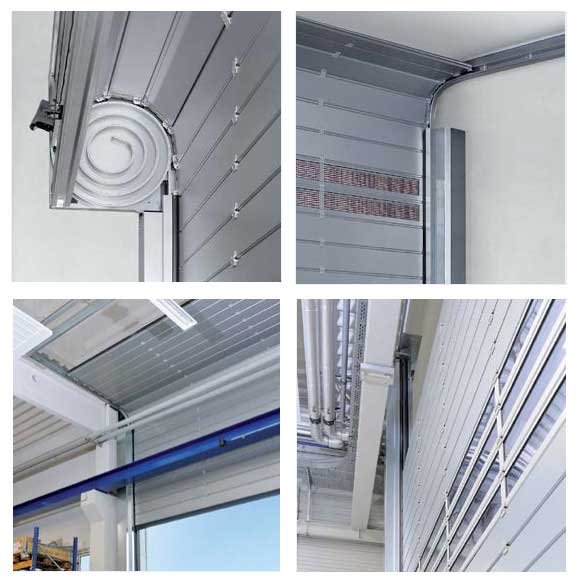 門簾機構(gòu):閃光銀抗風(fēng)壓鋁合金復(fù)合門板;厚度:22-43-60-80mm,標(biāo)配碳玻璃安全透明視窗,通過軟連接膠條將門板間進(jìn)行密封,配合采用鋼鋁復(fù)合配重密封底梁