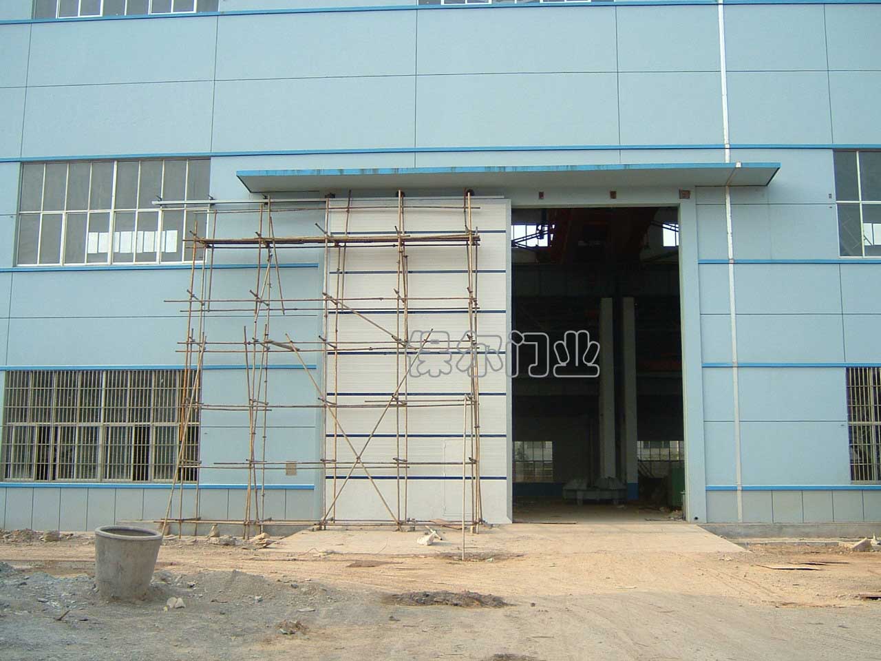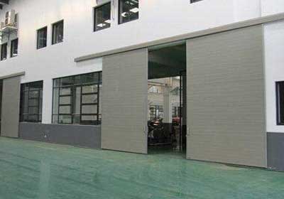 平移式工業(yè)門在門洞上下裝有導軌,門扇置于兩道軌中間,通過齒輪傳動,實現左右啟閉。平移方式的工業(yè)門對建筑上下空間限制小,但要求門洞左右兩邊有足夠的空間放置門體,啟閉平穩(wěn)可靠,手動輕松自如。一般用于倉庫、工業(yè)廠房
